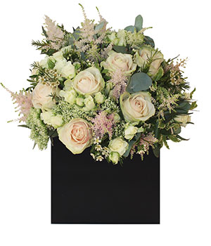 What a classic! Beautiful white lily's surrounded by luxurious fresh robelini and...