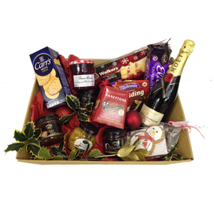 A wonderful hamper packed with yummy christmas goodies and a bottle of Moet Champagne., Includes:Carrs Cheese Melts Crackers, Bonne Maman Jam, Walkers Festive Shortbread Biscuits, Jacobs Elite Chocolate Biscuits, Lakeshore Mulled Wine Chutney, Lakeshore Wholegrain Mustard, Lakeshore Cranberry Sauce, Lakeshore Ham Glaze,Gateaux Christmas Pudding, Classic ItalianPanettone and bottle of Moet Champagne*Please note:In the unlikely event of an item not being available, the item will be substituted for similar or upgraded