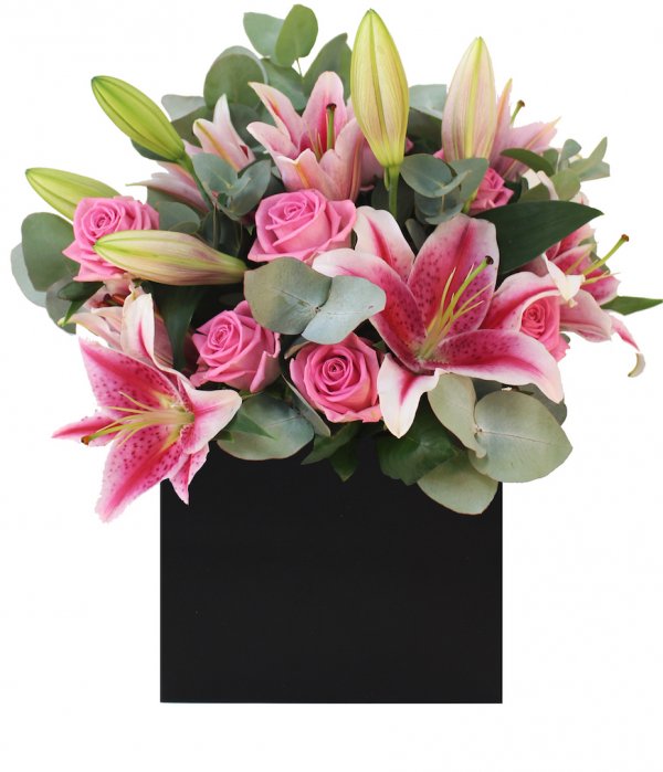 Send a smile with this gorgeous scented bouquet of pink lilies and pink roses. This bouquet may be delivered in bud to ensure the best quality. The flowers used in this bouquet are short stemmed and presented in posy style.