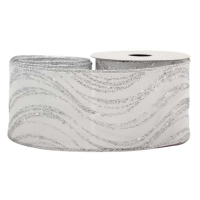 Ribbon Waves Glitter Satin White / Silver (63mm x 10yds)