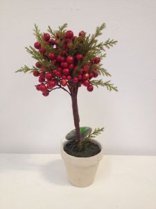 Topiary Red berry & Leaf Spray H35cm D22cm